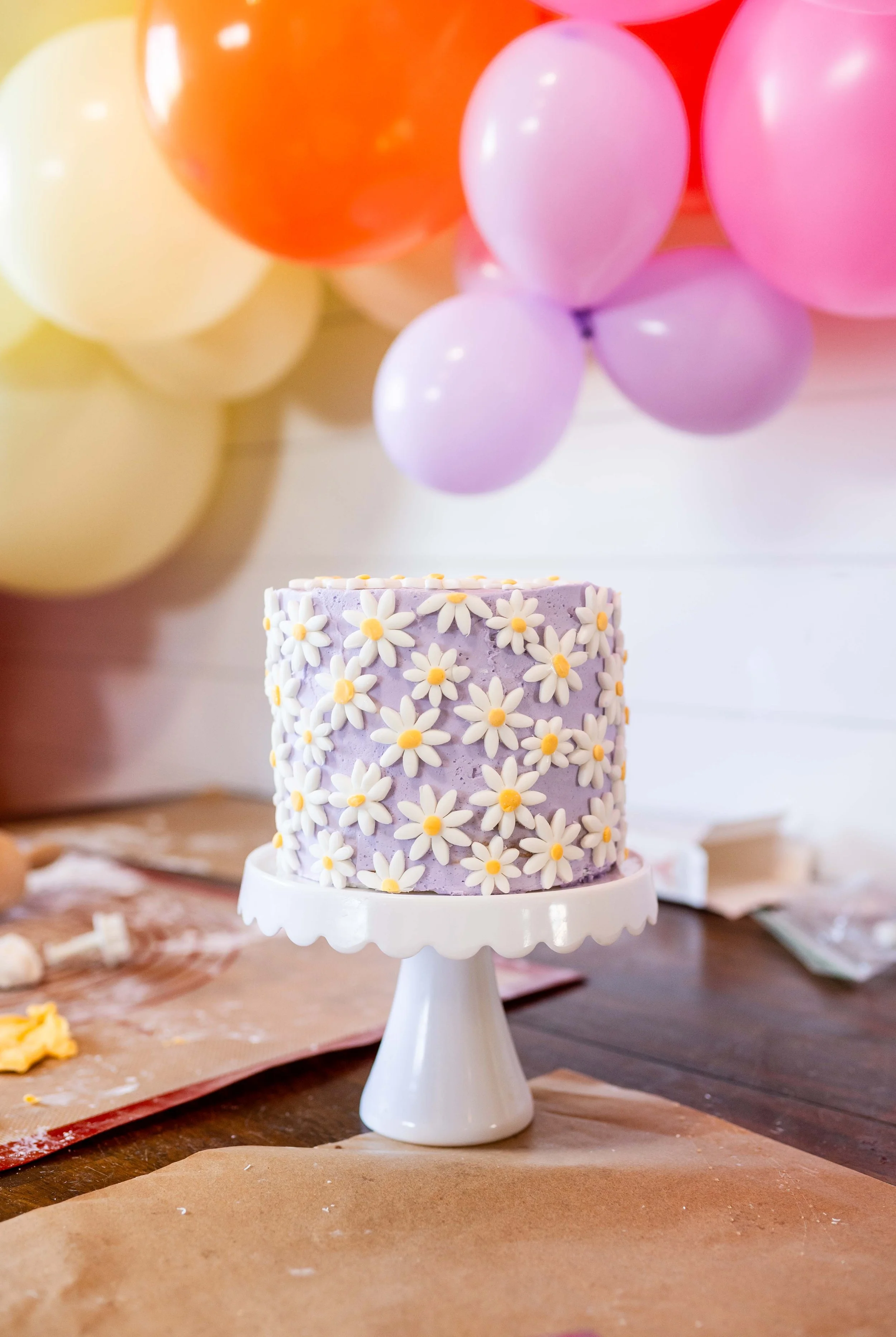 This daisy cake is one of my favorites and is so simple to do, it just takes a little bit of time. I wrote up this tutorial 2 years ago when my oldest turned 3 and she requested it again this year but with pink frosting and we did her sister’s purple.